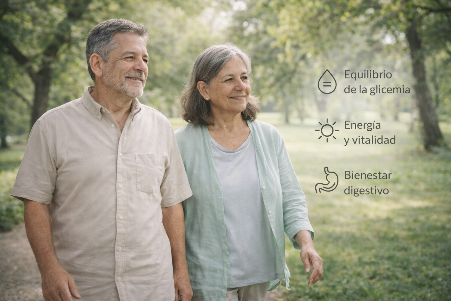 Suplemento natural que puede ayudar a estabilizar la glucosa y favorecer el equilibrio metabólico. Desarrollado para personas mayores de 50 años que conviven con: